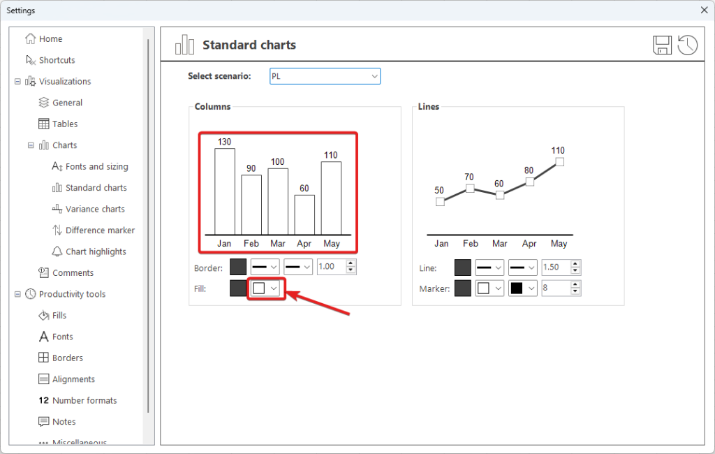 In addition, each Style consists of four predefined, functional Scenarios. They are used in the chart wizards, formatting task panes and other places. We designed it this way, so you can easily change formatting of certain elements or visuals according to your needs – all without the requirement to memorize all settings and apply them one by one manually. It is a huge time saver.