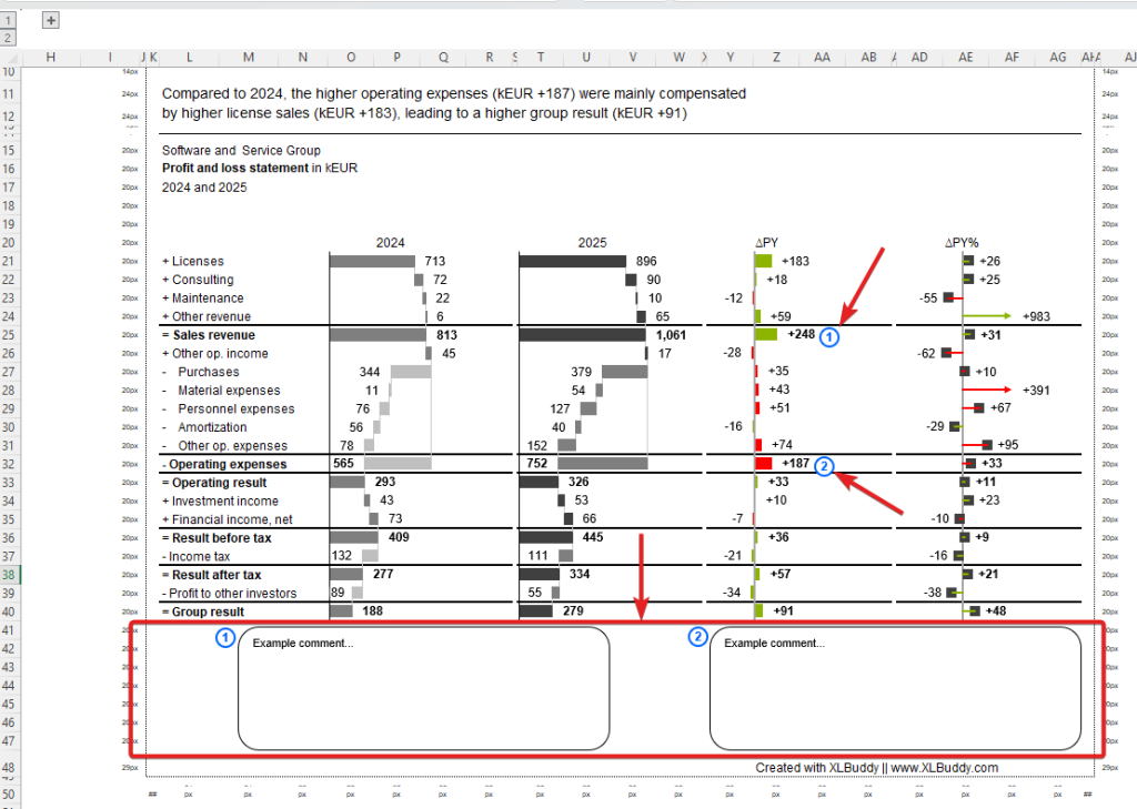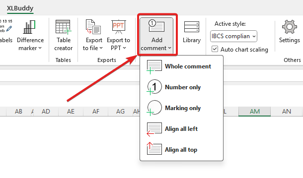 After clicking ‘Whole comment’, you will be asked how many comments you want to create. When you choose, XLBuddy will create preformatted comments, which you can then put on your report: