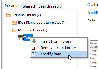 Once your items are in the library, you can edit them. To do it, right click on the item you want to edit and click ‘Modify item’ button: