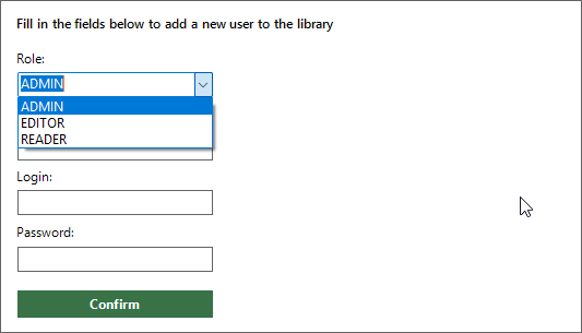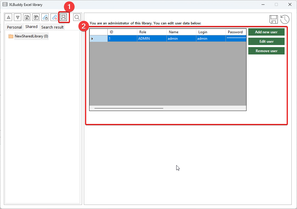 As an administrator, you can add, edit or delete users. To do it, click on the ‘Users’ button in the top part of the library window: